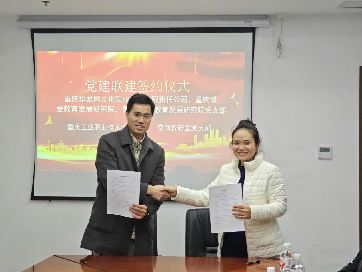为深入贯彻新时代党的建设总要求,创新基层党建工作模式,12月18日下午,我校设计学院空间教研室党支部与重庆博爱教育发展研究院党支部在该院会议室举行党建联建共建签约仪式。设计学院空间教研室党支部书记赵海如、重庆博爱教育发展研究院党支部书记彭发清及双方党员代表参加活动。