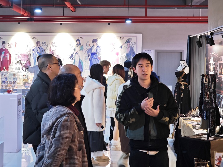 重庆华龙网文化事业有限公司副总经理彭发清在现场与毕业生们亲切交流,他高度评价了参展作品在技术与创意层面展现出的巨大潜力,勉励青年设计师思维敏锐、善用科技、拥抱变革,希望每位毕业生保持对知识的渴望和创新的热情。