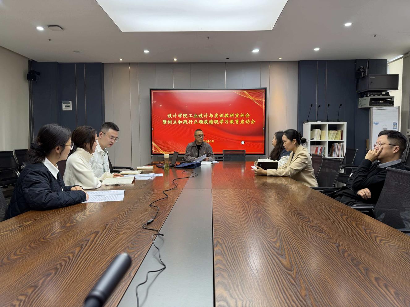 工业设计教研室党支部书记张帆带领支部党员集中学习了习近平总书记关于正确政绩观的系列重要论述,引导大家深刻把握其核心要义和实践要求。在学习中,张帆强调,要将正确政绩观融入教学科研与设计实践,真正把服务师生、服务社会作为衡量工作成效的根本标准。