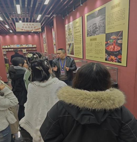 活动现场,非遗体验中心的老师首先带领同学们参观了非遗文化展示陈列区,并详细讲解了重庆名字、水路码头、蜀锦、重庆火锅、川剧、茶饮茶道、花丝镶嵌、掌灸等项目的历史渊源,从文化背景到技艺特点,让大家对非遗传承的意义有了初步认知。