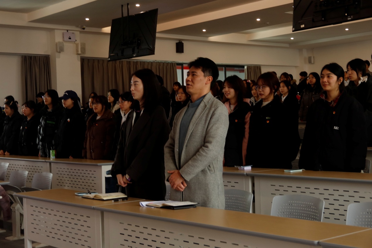 仪式在庄严的国歌中拉开序幕。参会人员肃立高歌,激昂的旋律响彻会场,展现了新时代青年坚定跟党走、奋进新征程的昂扬风貌与赤诚初心。