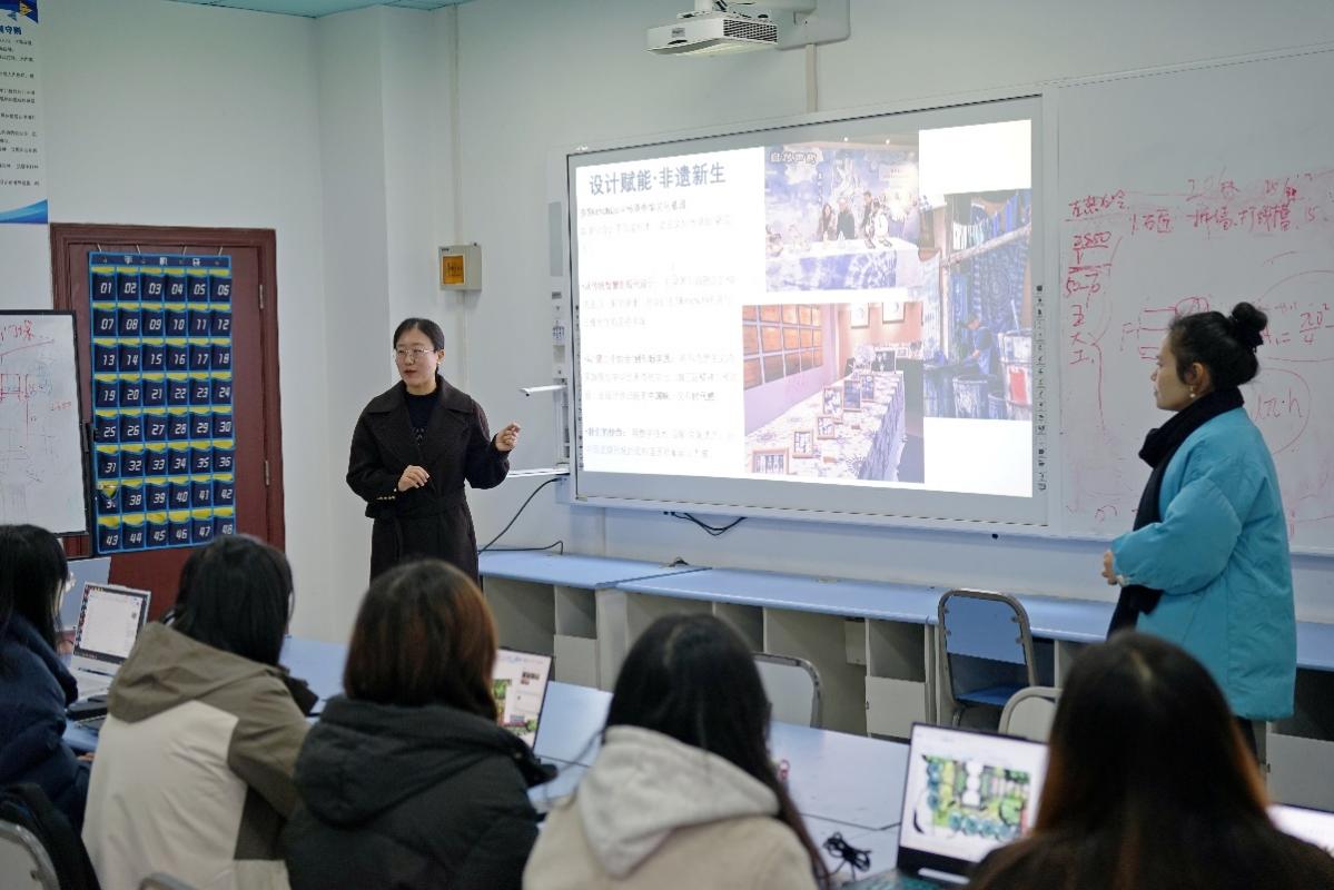 “双师同堂”教学模式通过跨学科协同,打破了传统教学壁垒,整合了多元教学资源,实现了知识传授与价值引领的有机统一。学生们纷纷表示,这样的课堂既让他们接触到生动的设计案例,又感受到了历史温度,增强了对专业学习的兴趣和对传统文化的认同。